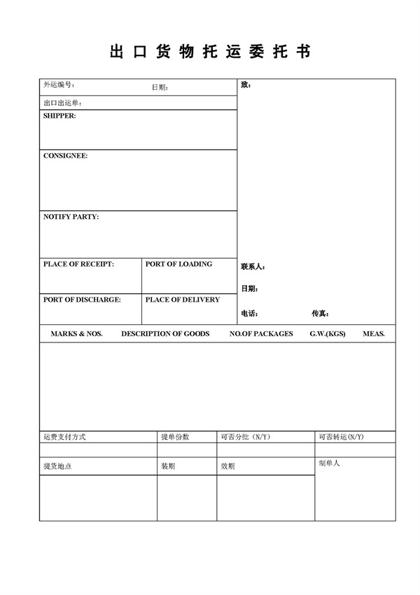 出口貨物托運委托書 TRANSPORT APPLICATION FORM FOR EXPORT GOODS