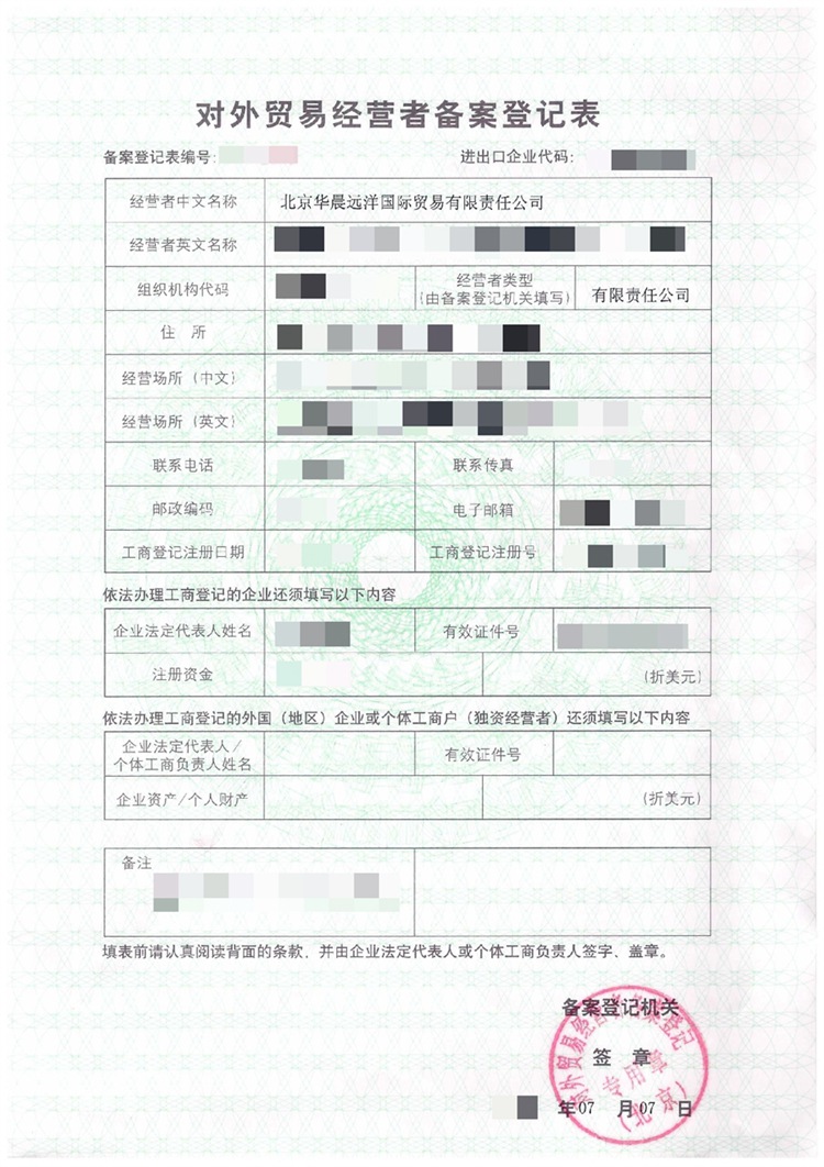 華晨遠(yuǎn)洋公司,全程代辦對(duì)外貿(mào)易經(jīng)營(yíng)者備案登記表、海關(guān)注冊(cè)等全套進(jìn)出口資質(zhì),十年代辦經(jīng)驗(yàn),專業(yè)誠(chéng)信。有需要請(qǐng)隨時(shí)電話聯(lián)系010-84274255 ,010-84270941。